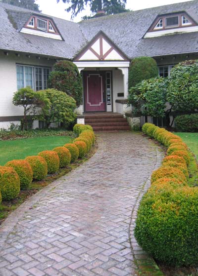 It’s been a favorite of ours, particularly all the casement windows; the curved approach walk with the formal shrubbery, the welcoming way in which the building is sited at the corner with Regents and Dunckley; the brick, the tile roof and all the Tudor details. It’s a nice place.