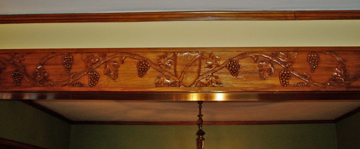 Detail of a hand-carved beam, Henry and Louise Phillips Home. Photo courtesy of Tami and Brian Clare