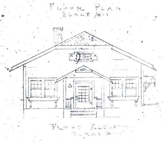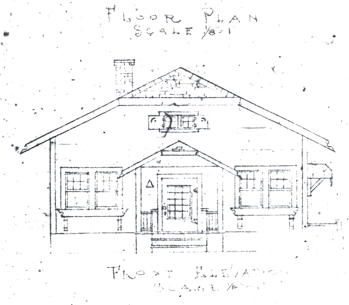 Detail from elevation drawings filed with construction documents for the city’s permit process. Note that the building was designed by architect Edward G. Larson, working for Redimade Building Company (which was based in Portland).