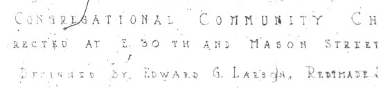 If you’re a long-time reader of the blog, you’ll recall our piece on the controversy about construction of the Alameda Park Community Church (click here for that page). As a reminder, in the Fall of 1920, neighbors were not happy about plans to build the church on two lots at the southwest corner of 30th Avenue and Mason. The former owners of our house—Walter and Edith Morrison—led a campaign to oppose the building, and then to relocate the planned construction one block east to the island at the corner of Mason and Regents where it was ultimately built (but not before trying unsuccessfully to kick it out of the neigborhood altogether) .