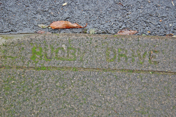 To be clear: the original plat for Alameda refers to this as Stuart Drive, even though there is no curb stamp that names it so (the original one may have been at the top of the hill on the north side of the street, perhaps obliterated from curb repairs). So Rugby joins Glenn and Laura as mysteries awaiting solution. Any ideas?
