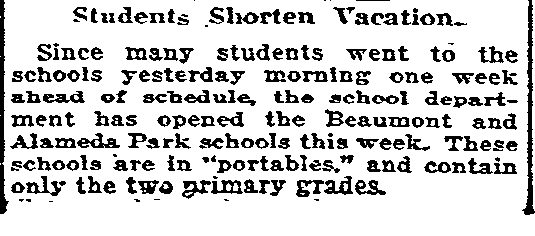 I’m thinking the reporter may not have been a stickler for detail. The story from Oct. 2, 1914 seems to have Beaumont and Alameda Park mixed up, too.