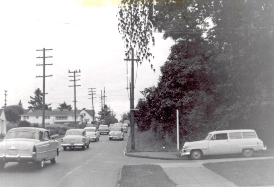 Check out this view looking north up the hill at NE 33rd and Fremont–Gravelly Hill–taken at Klickitat Street in 1954.