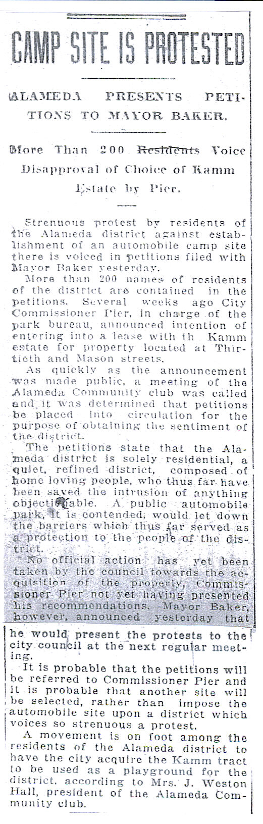 Want to build a campground, or as they were known during the day, an auto camp? Forget it. This neighborhood was definitely not buying any such proposal.