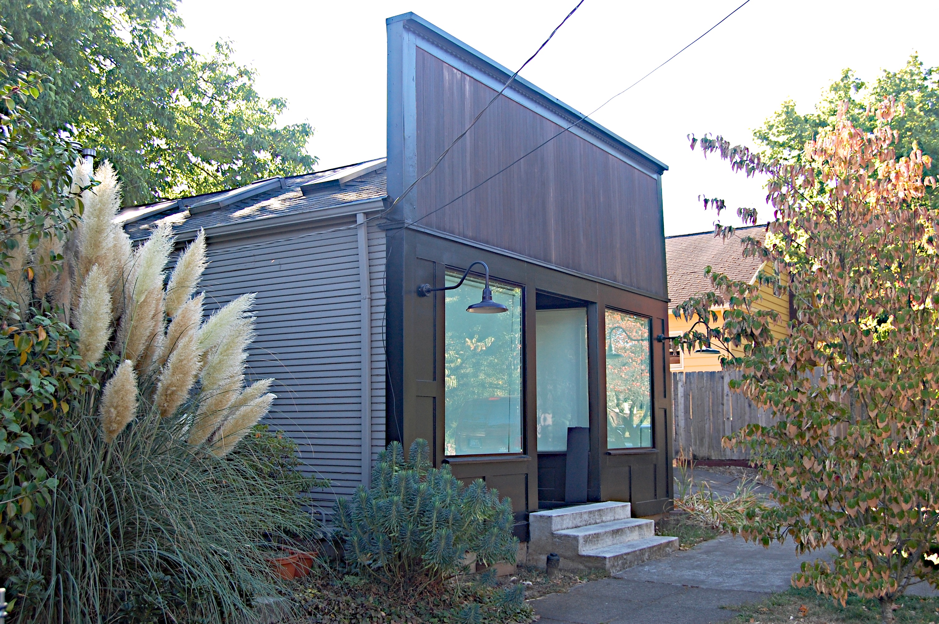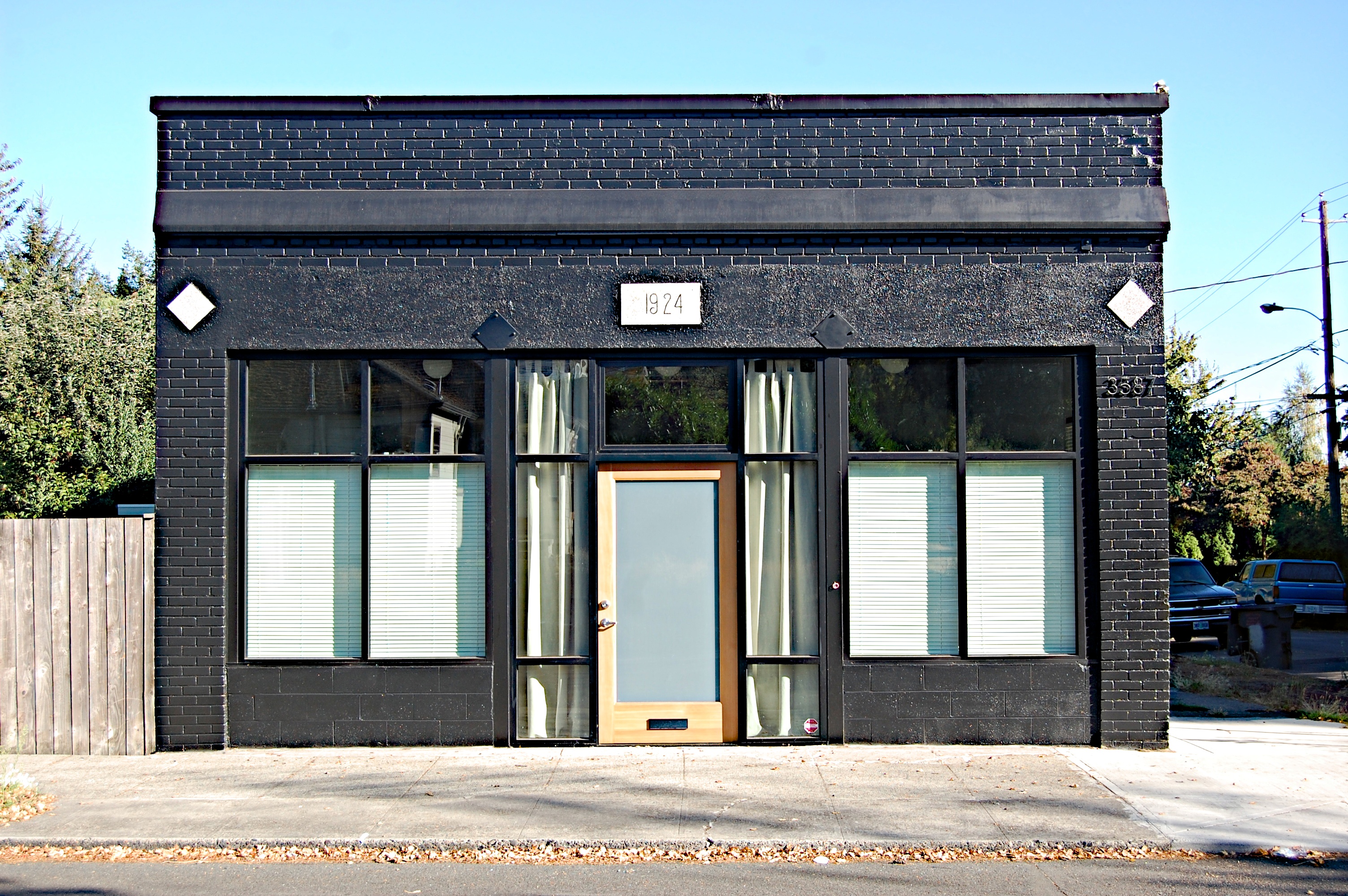 This handsome one-story brick structure was built in 1924 by Joe Dellasin, and was operated in its early years as the Marble Palace Grocery and Market by George A. Peters, who owned another market by the same name near NE 15th and Fremont. Several proprietors ran it through the 1930s and 1940s before it became Prescott Foods, the name that stuck with the business through multiple mom-and-pop owners up until the mid 1980s (Loomis, Breshears, Dickerman, Patrick and Wallis). Grace and Earl Dickerman ran the business from 1948 until 1966 when they sold it and bought a small hardware store on SE Hawthorne. By 1985 the building had succumbed to the changing grocery shopping patterns of nearby residents (like most other small neighborhood groceries), and it became an upholstery shop, which it served as until 2012 when Affiche Studios moved in and fixed it up.
