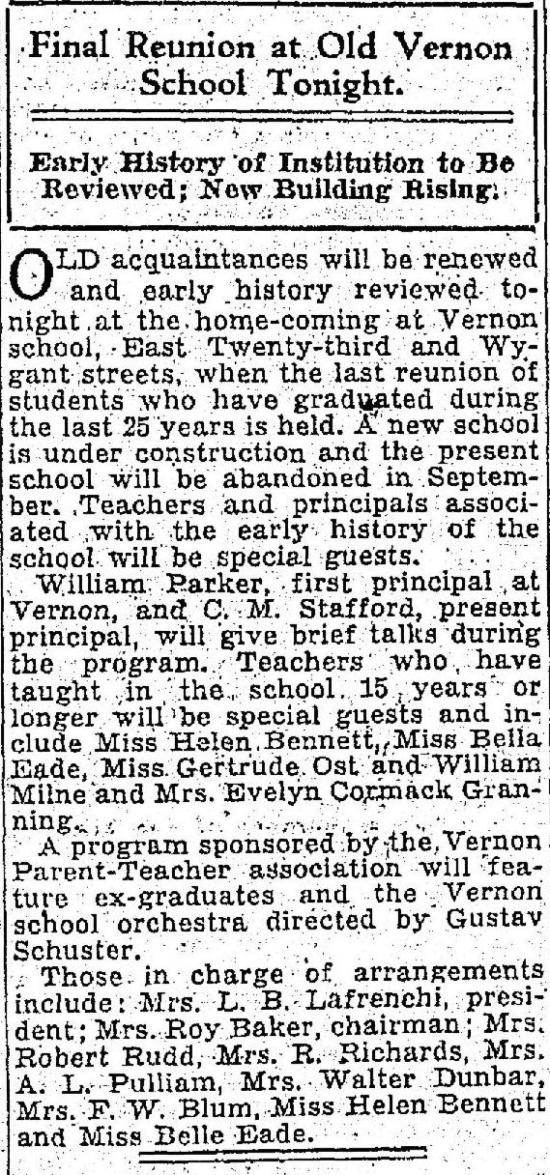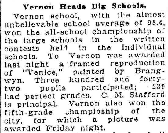 Many of us will be attending the 111th anniversary of Vernon School this Thursday. Thanks for the memories.