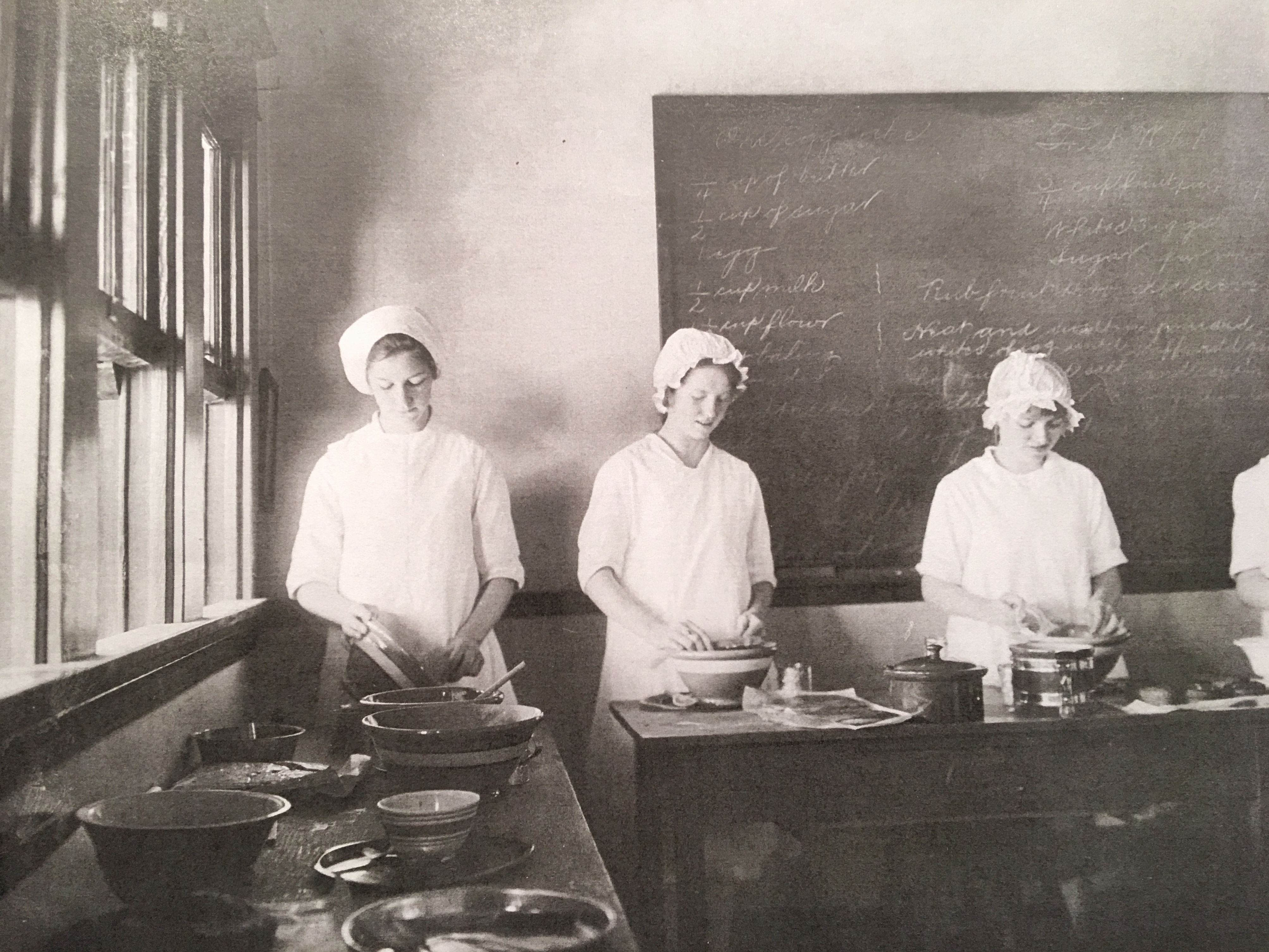 Regardless of which house or what it was called, Vernon’s community-house-practice-house was a pretty resourceful little institution. Students built the furniture, dug, planted and weeded the vegetable garden, made the drapes, sheets and linens, planned and made the meals, planned household budgets and hosted dozens of teas and gatherings to practice their domestic arts. They developed systematic approaches to cleaning and maintenance. Principal Parker dubbed the insight and experience this created as “homecraft,” the art of running a household. Students had the responsibilities and the learning rewards of figuring out how to run a two-story, six-room house; to practice at some life skills that might come in handy down the line.