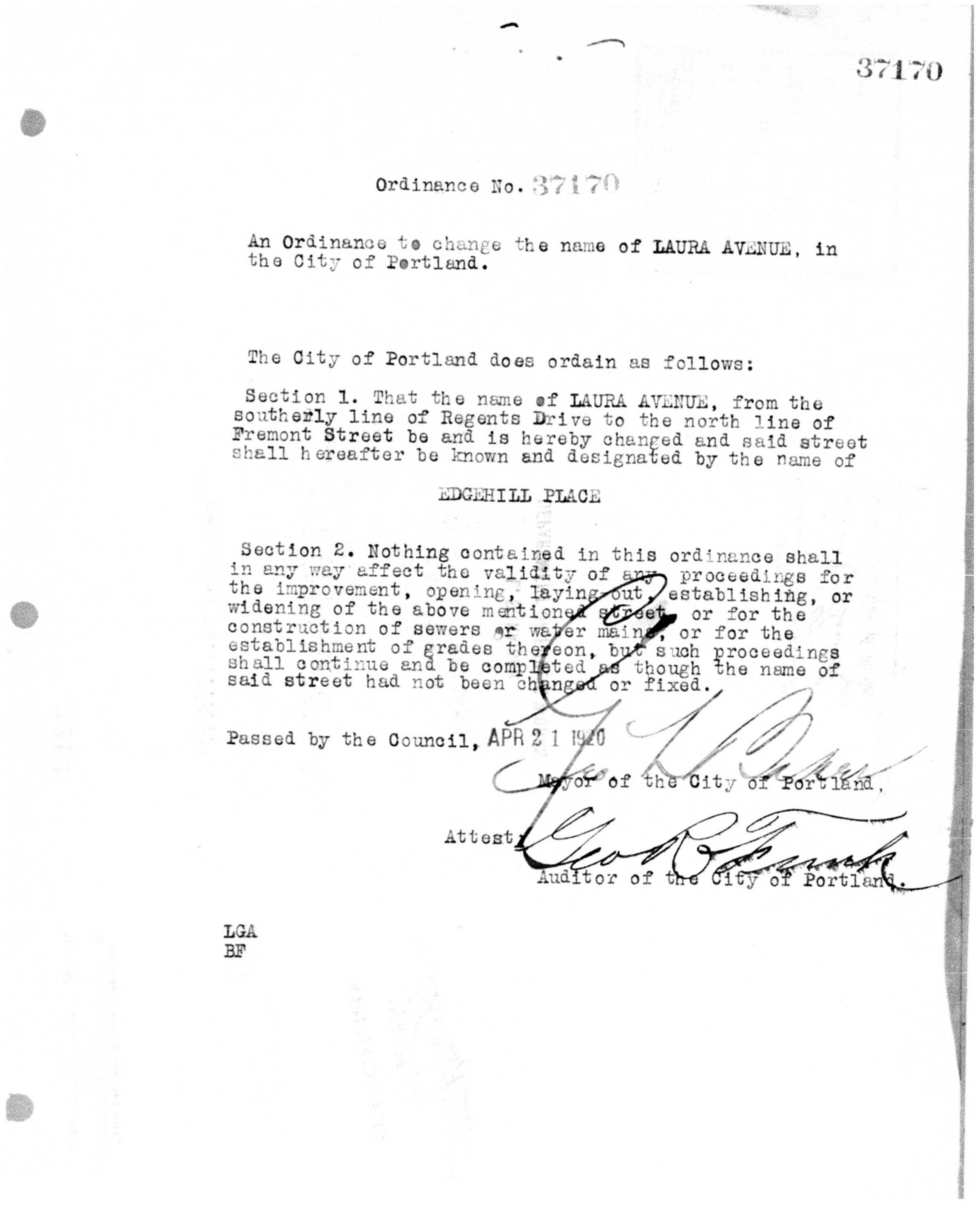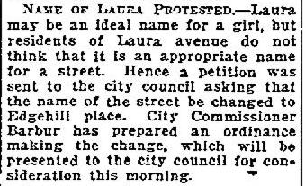 City Council agreed and on April 21, 1920 unanimously passed Ordinance 37170. Laura was out and Edgehill was in.