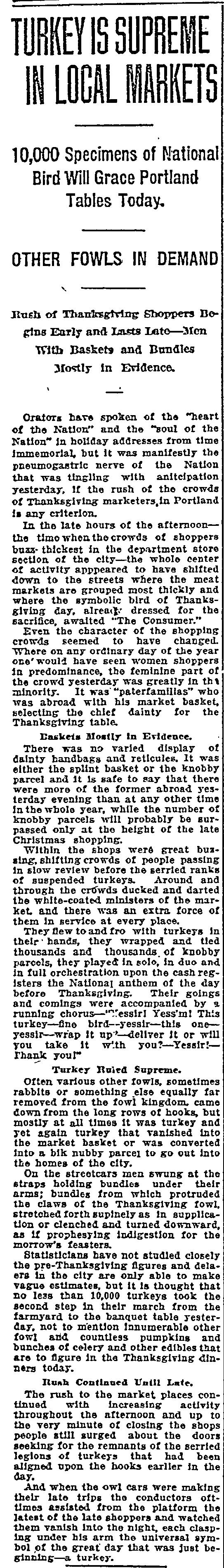 Some nice imagery here of a bustling Portland on the eve of Thanksgiving 106 years ago. An owl car was the late night streetcar that traveled through the neighborhood once an hour into the small hours of the morning; read on. Happy Thanksgiving from alamedahistory.org