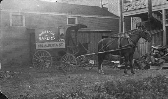 At the back of Gabel & Son Bakery, formerly 662 Alberta, today’s 1726 NE Alberta, about 1909. Click to enlarge. Used by permission of the Gholston Collection.