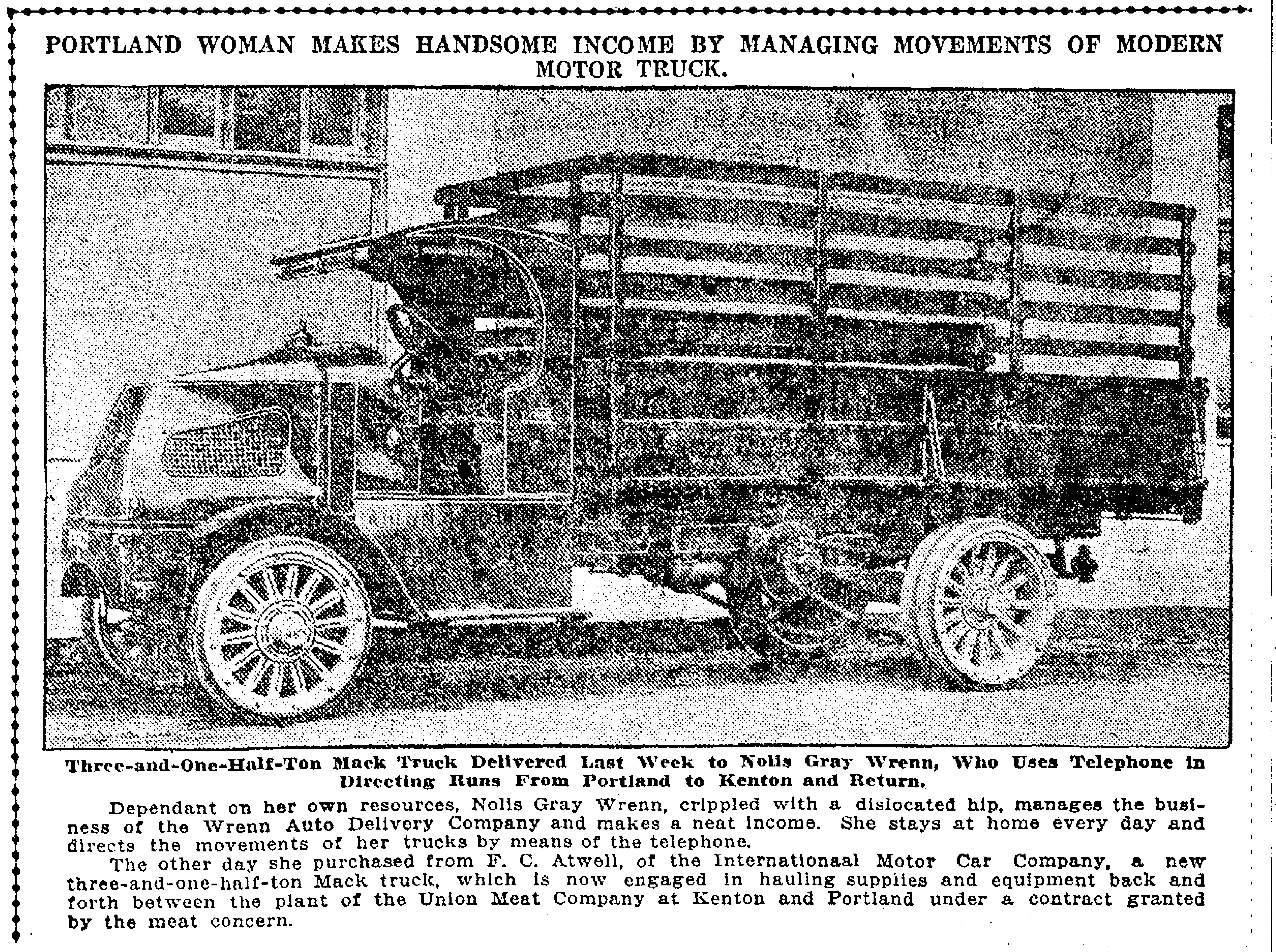 By 1917, Nolia had bought a new truck, had a contract with the Union Meat Company, and was pioneering a whole new business model, a notable accomplishment for a woman-owned small business in the heavy industrial sector in the 19-teens. Read on:
