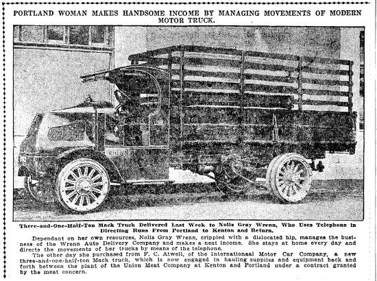 First things first: Wrenn Auto Delivery is not a company that delivers autos. They were essentially an around-town trucking firm. The name “auto delivery” was an artifact of the horse-drawn earlier days when it was a novelty to have something other than a horse and carriage deliver goods. When the company started out just four years after the Broadway Bridge was built, it was a major innovation (and quicker) to have an automobile deliver your load of heavy wax paper or whatever you might be needing.