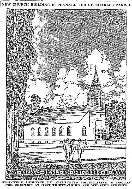 In the spring of 1950, Archbishop Edward Howard made a change in parish leadership. By that summer, the parish had obtained a site and was into construction on the St. Charles school and campus that exists today 12 blocks east at NE 42nd and Emerson. The old rectory was jacked up from the lot south of the old church and trucked to the new site in a careful two-day moving process.