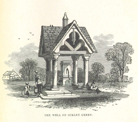 • Ockley is a picturesque town in Surrey in southern England with a much-written about commons or “green.” Even today, Surrey’s heritage authority reports the most important feature of little Ockley town…”is the long, broad green, which is said to be one of the most impressive in southern England.” Both the green and the town were celebrated in writing and in art during the 1800s. Here’s an example: