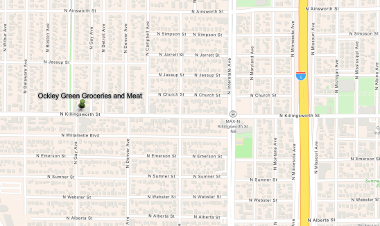 Neither the Pierson Brothers nor Ockley Green Groceries and Meat appear in any of the Polk city directories either side of 1911 when this photo was taken, but don’t tell these guys that. We’ve scoured through newspapers and other business listings of the era and don’t find reference to these businesses either, though the grocery operated for years after the photo was taken. Help wanted ads from 1910 sought an experienced meat cutter to come in on Saturdays. Perhaps that’s when the fresh meat arrived from the nearby Portland Union Stockyards.