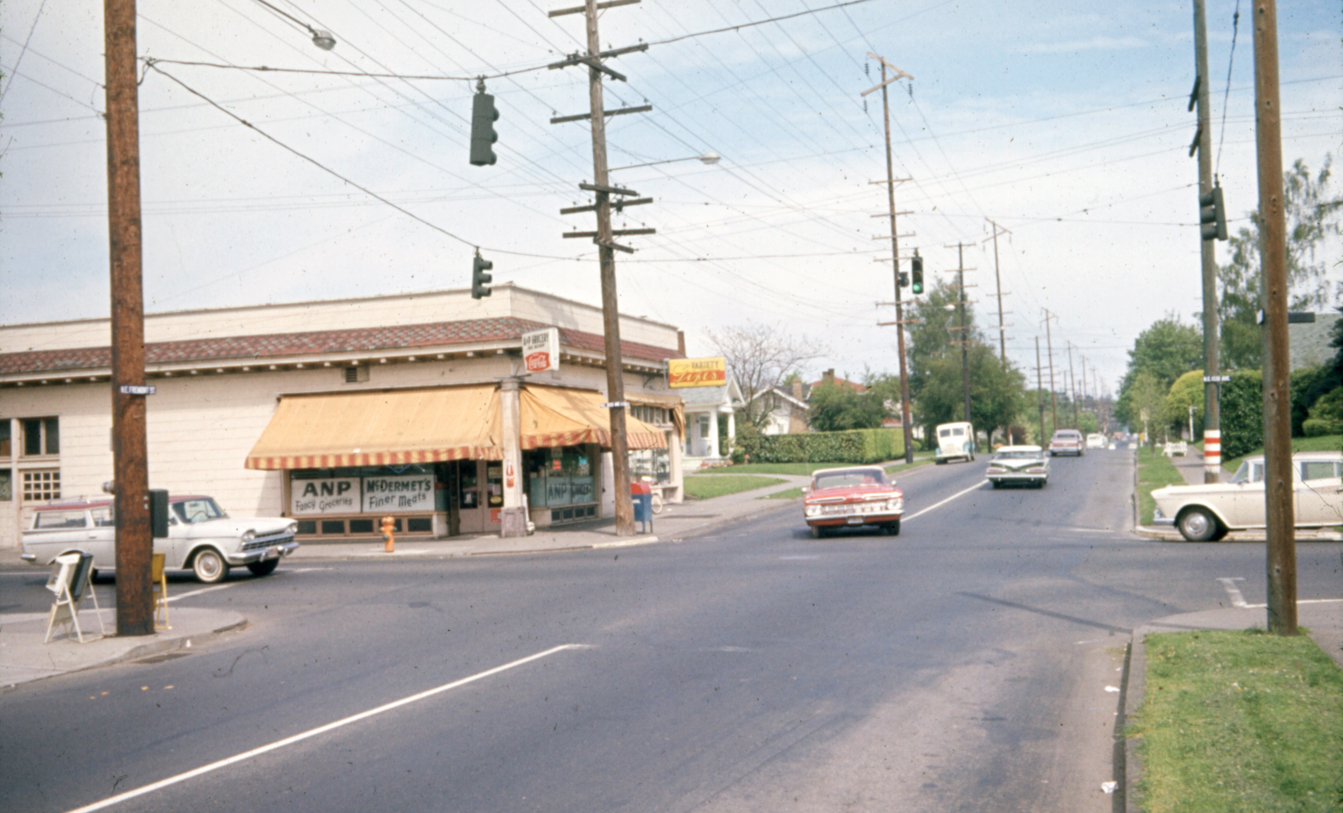 A 1955 photo looking northeast at the corner of NE 29th and Prescott. Photo courtesy of Historic Photo Archive.