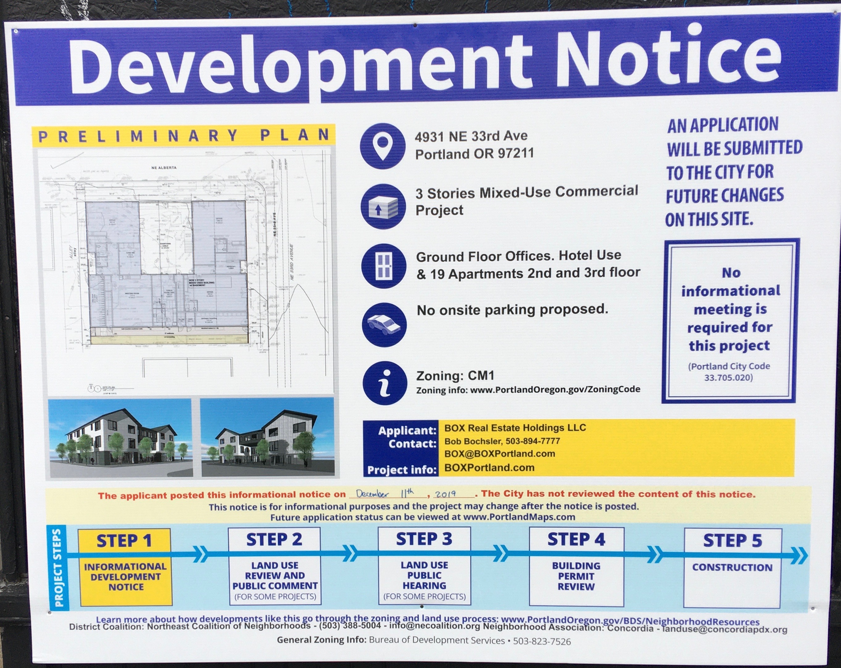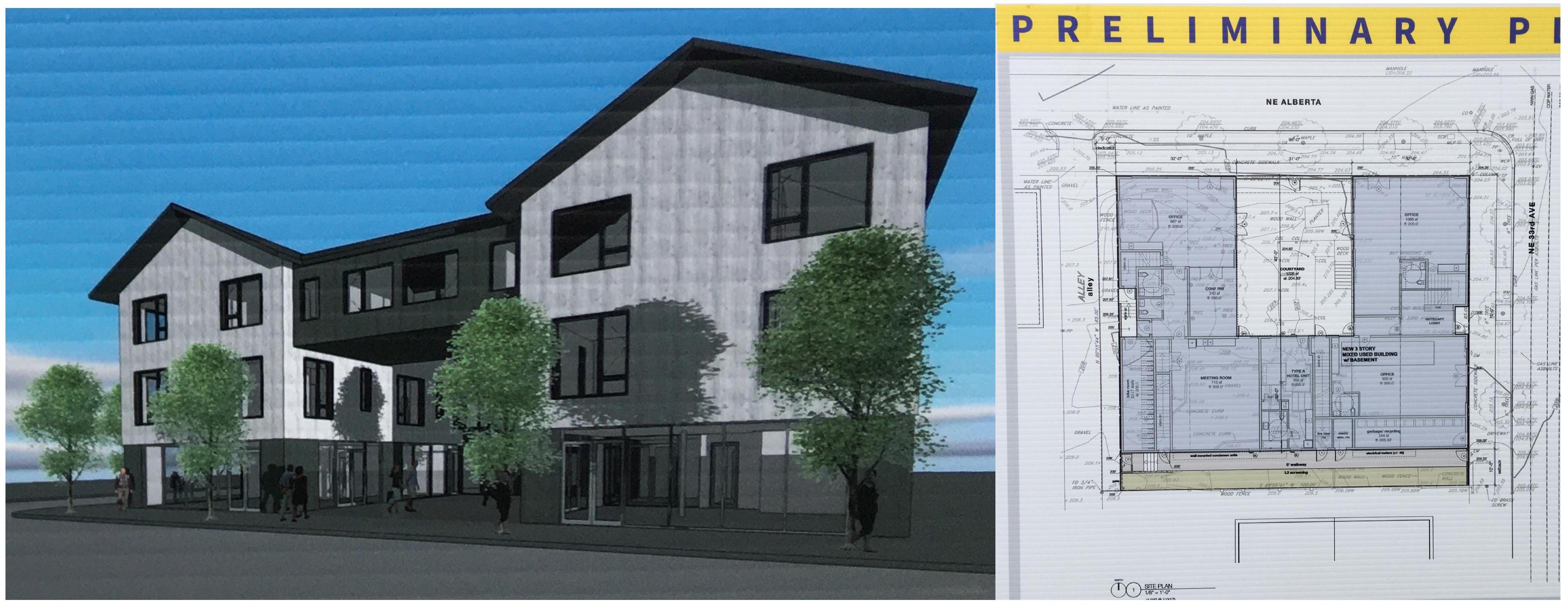 Architect’s rendering of the south side of the building facing NE Prescott Avenue. Courtesy Beebe Skidmore Architects.