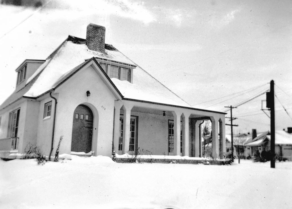 The 1944 photo shows a corner entry and what looks like French doors that open out onto Ainsworth. We’ve been in the neighborhood since the late 1980s and that south wall of French doors during our time has always been covered over with siding.