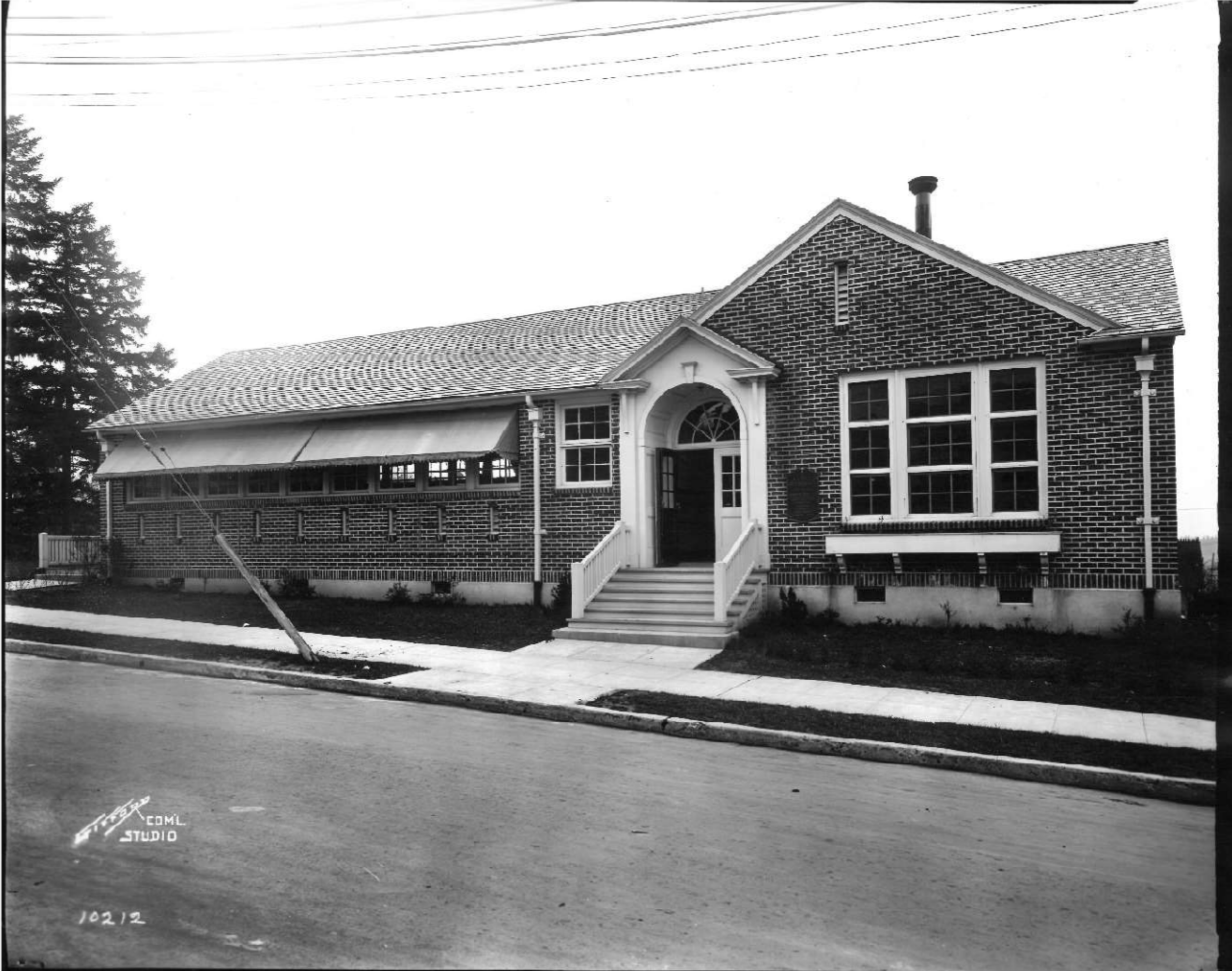 Built in 1918-1919 as Oregon’s only school entirely devoted to being “open air” throughout the school year, which was thought to be healthful during the rise of tuberculosis and other diseases. Children studied, played, ate and napped in the open-air classrooms, which were defined by their large banks of windows. The students were issued special warm clothing and monitored closely by a school nurse who also coordinated one-on-one with families on menu planning and other behaviors to help children return to vitality.