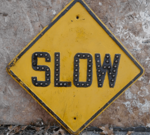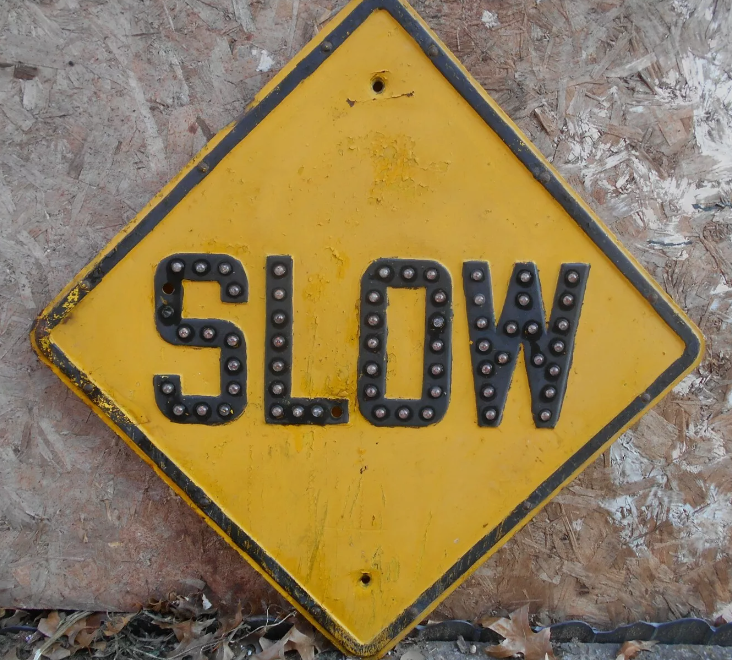 Post Script:AttentiveReader John Golightly adds his observations that the sign at the intersection probably was a “SLOW” sign, which we agree with. Here’s a photo of a 1930s-era slow sign in its characteristic diamond shape: