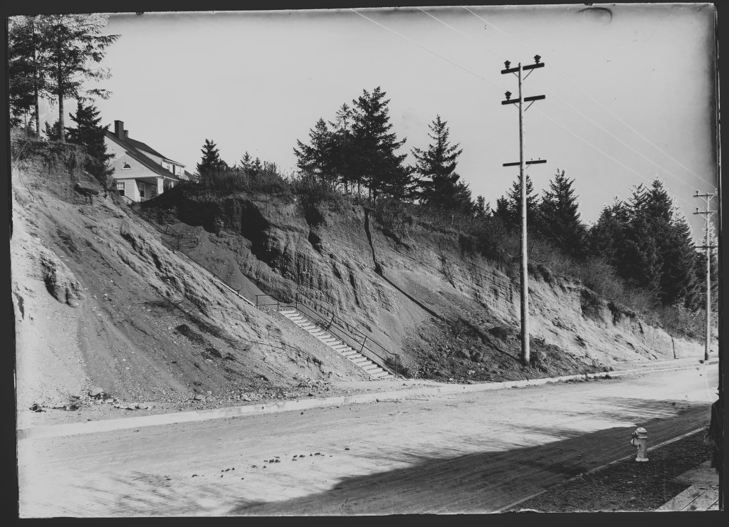Long before construction of McLoughlin Boulevard, the remembered house on the bluff had a Grand Avenue address, and stood on the east side of the street at the corner of Haig. Back in 1912, Grand Avenue was never intended to be a major thoroughfare connecting downtown and the central eastside with outer southeast Portland. Think: quiet, meandering neighborhood street.