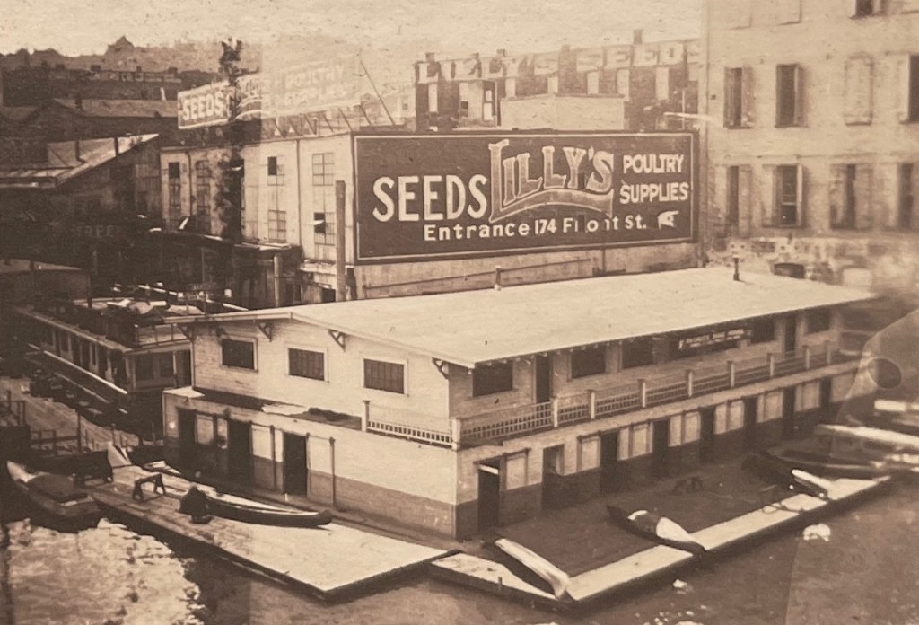 - We knew the Doernbecher story in this location, and could see the “Doernbecher Manufacturing Company” painted on the side of the building in the photo. The alignment of the Doernbecher building, slightly angled to the crossing, is still evident today in what may well be the very same building.
