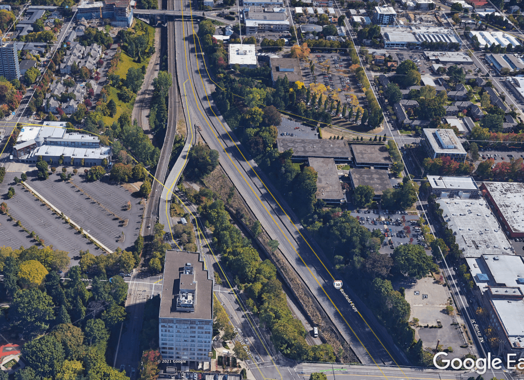Trestle construction began in earnest in December and was completed in January. Later that year, the East Ankeny Line was extended a bit farther north to an end-of-the-line stop at NE 28th and Halsey. The envisioned loop with the Broadway Streetcar never materialized.