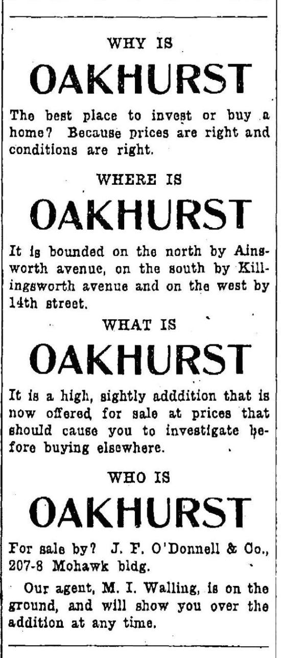 One of the interesting aspects of Irvington Park was how aggressively real estate man F. B. Holbrook marketed it during its early years, and how he coat-tailed on Irvington, located more than a mile south as a crow flies, which he had no actual business relationship with. Have a look at this ad, which ran in The Oregonian on July 10, 1907: