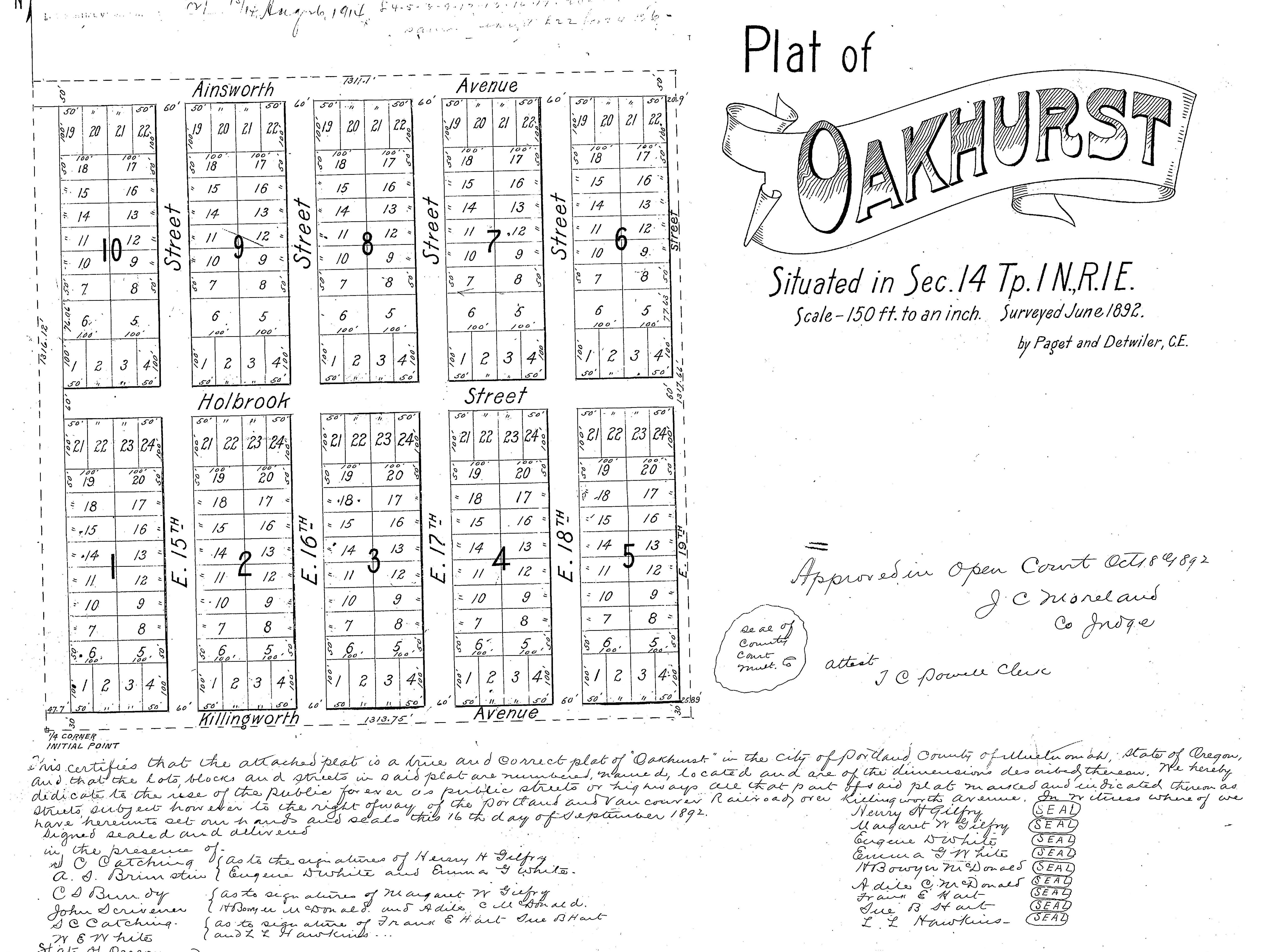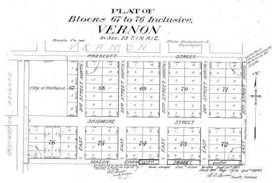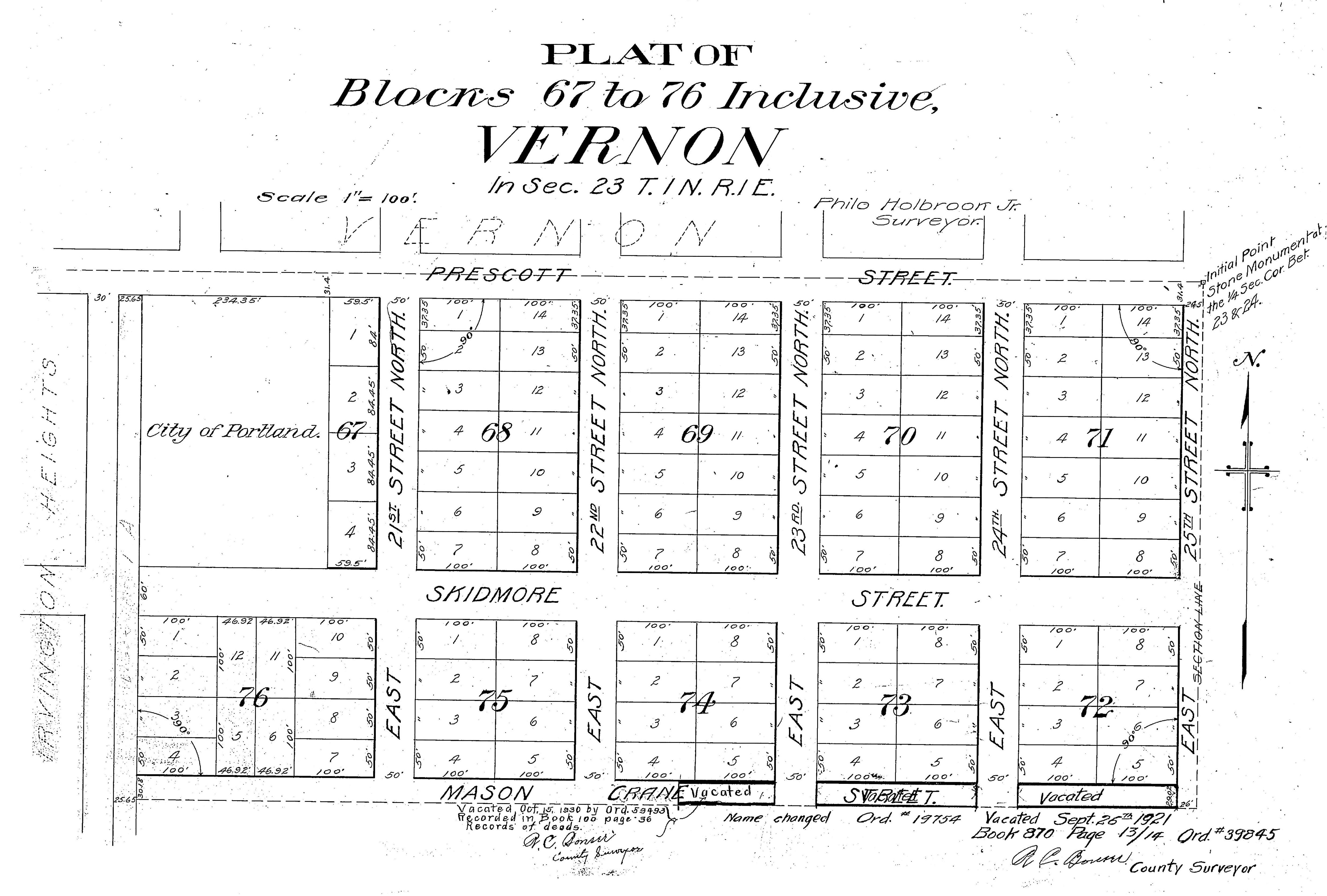 Maybe you’ve figured out that “Riggen Street” is today’s Holman, and that “North Street” is Rosa Parks Way. 33rd on this plat is actually today’s 32nd place and 34th is 33rd. Details, details.