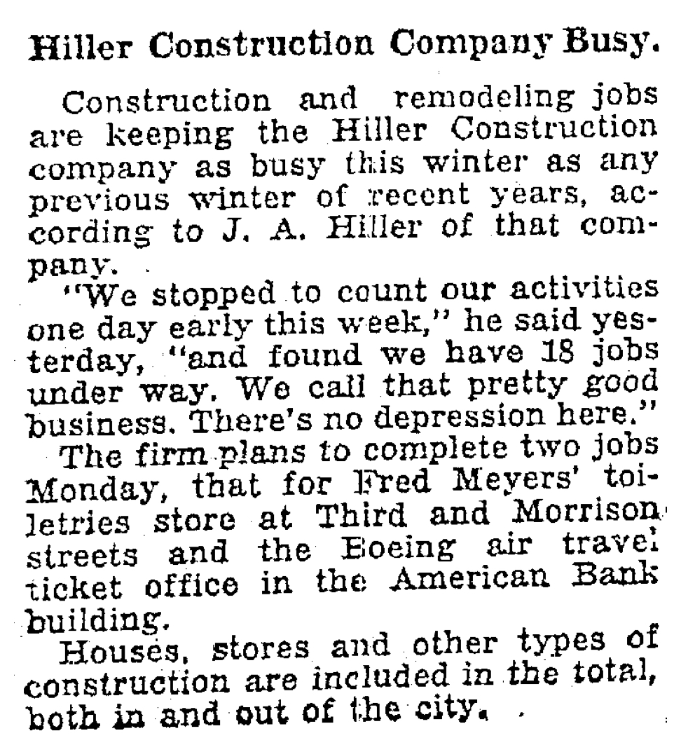 By 1926, Hiller Brothers Inc. had built more than 40 homes within a two-block radius of NE Knott and NE 32nd (Gus lived in a home the company built in 1923 at 3107 NE Knott, and James lived not too far away at 2028 NE Alameda Drive, built in 1926 by Hiller Brothers).