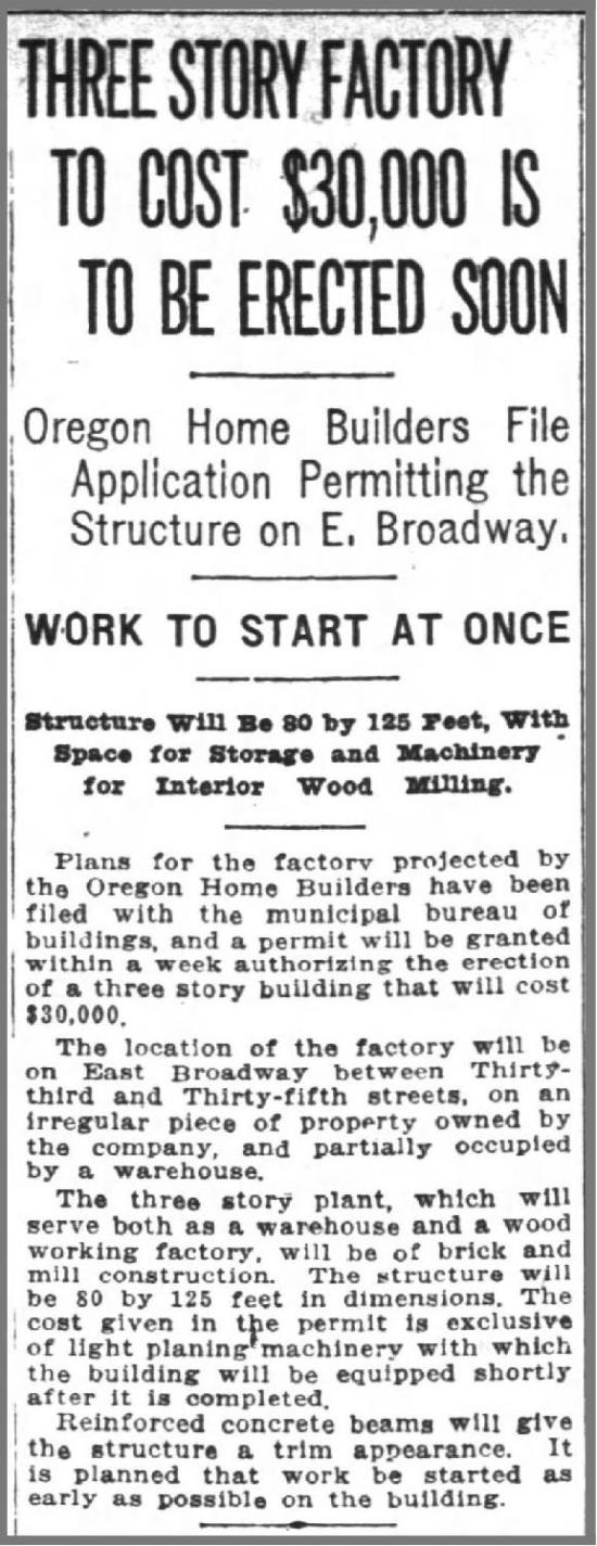 If you’ve been following along on our exploration of the various builders who shaped our neighborhoods long ago, you’ve seen the pieces we’ve written about both the Oregon Home Builders Company and their factory building at NE 33rd and Broadway. This high-profile Portland company built more than 100 beautiful homes during its five years of operation from 1912-1917.