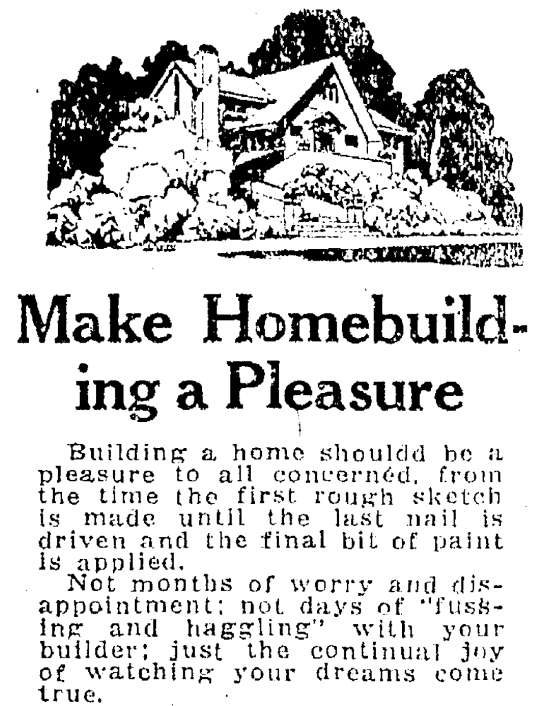 Homebuilding was in a slowdown due to economic conditions, so any building news was good news, and local newspapers paid close attention to milestones in their construction process. As the summer of 1915 unfolded, a series of short news items documented issuance of the building permit to builder James L. Quinn; excavation on the ridge and framing of the foundation as well as advertising for plumbing and electrical bids on August 25th; and construction of the retaining wall above Regents Drive on October 3, 1915. Capping off all the construction news coverage was this final piece, which appeared in the Oregon Journal on March 19, 1916: