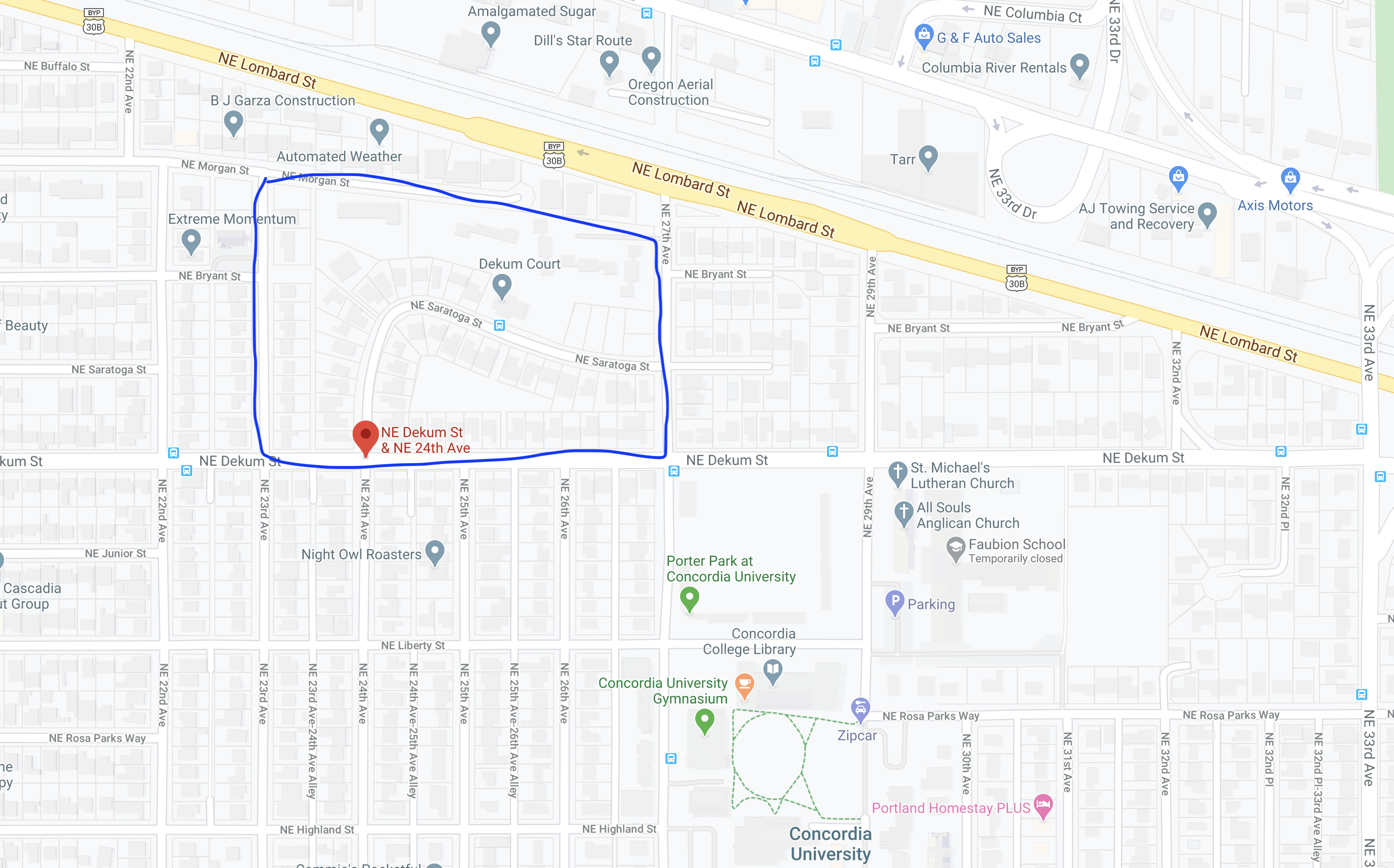 For a time during the early 1940s, the Concordia neighborhood was home to one of the first wartime housing projects in Portland: the Dekum Court Project, an 85-unit complex of housing for non-commissioned officers and their families stationed at the Portland Air Base.