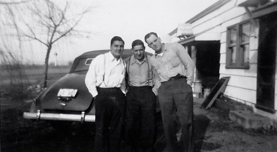 And here’s another: Mike’s dad, uncle and a pal in front of the tourist cabins, looking the other direction, open fields off to the north.