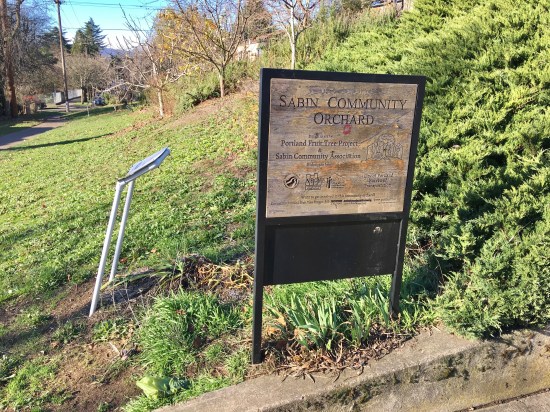We’ve wondered about this: are isolated apple trees from the early orchard days still out there scattered across this part of the neighborhood? Can any readers confirm? In a happy coincidence, the Sabin Community Association has planted a small orchard of young trees near NE 19th and Mason, on ground that probably once was part of the old orchard: