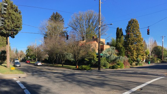 Location of the former Irvington Dairy barn at NE 21st and Fremont, looking northeast, December 2018.