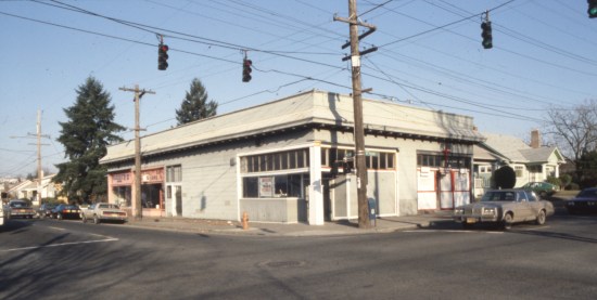 A similar view from 1985. In this photo, the ANP Market was in the process of becoming Roxanne’s, and the Fremont Pharmacy was the Full Holy Ghost Mission Church of God, Inc. Courtesy of City of Portland (OR) Archives, A2008-008.2113.