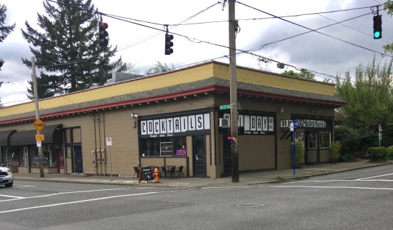 Throughout all this change, there’s been one steady witness at the northeast corner of the intersection that has seen it all: the former Anderson’s Grocery Company building, 1501 NE Fremont. Today it’s Daddy Mojo’s Cafe, and it’s had a long and interesting history. Here are two views about 20 years apart that will help turn back the clock.