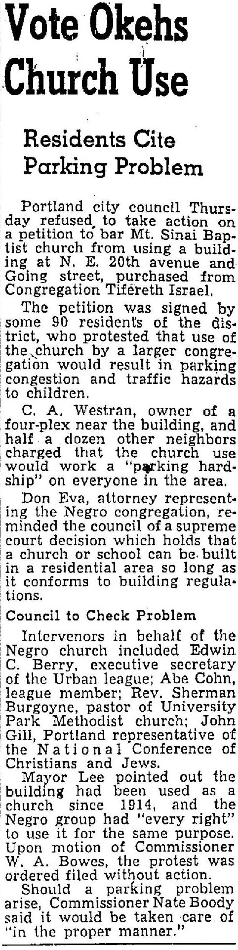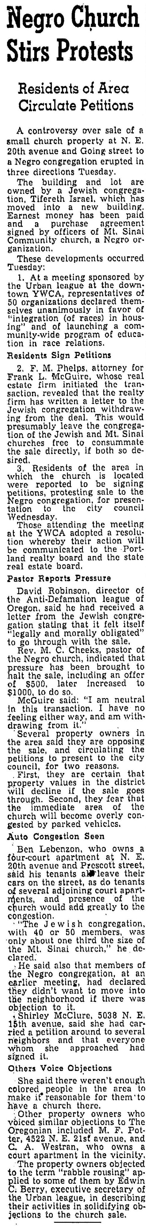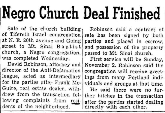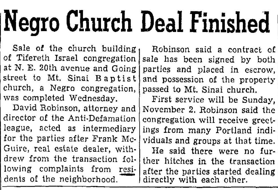 In this case, the transition from Jewish synagogue to African American church brought out the best in the respective religious communities, but was a low-water mark for enlightenment in the neighborhood, which shouldn’t really come as a surprise given Portland’s troubled history of official and unofficial racism.
