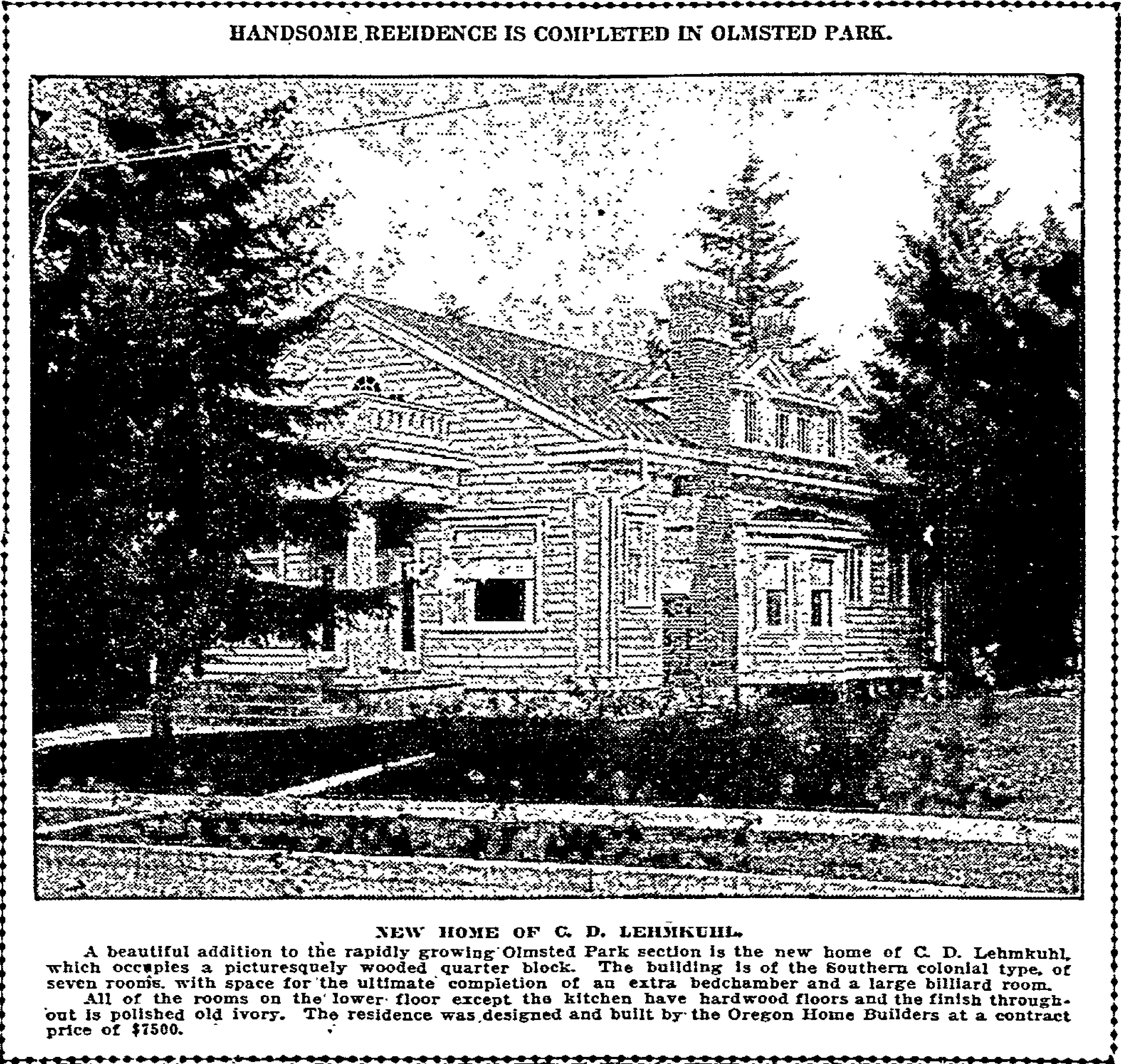 While the story didn’t recognize Eastman’s contribution to local construction trends, he was a principal architect for the Oregon Home Builders, which built more homes in Alameda Park and Olmsted Park than any other builder.