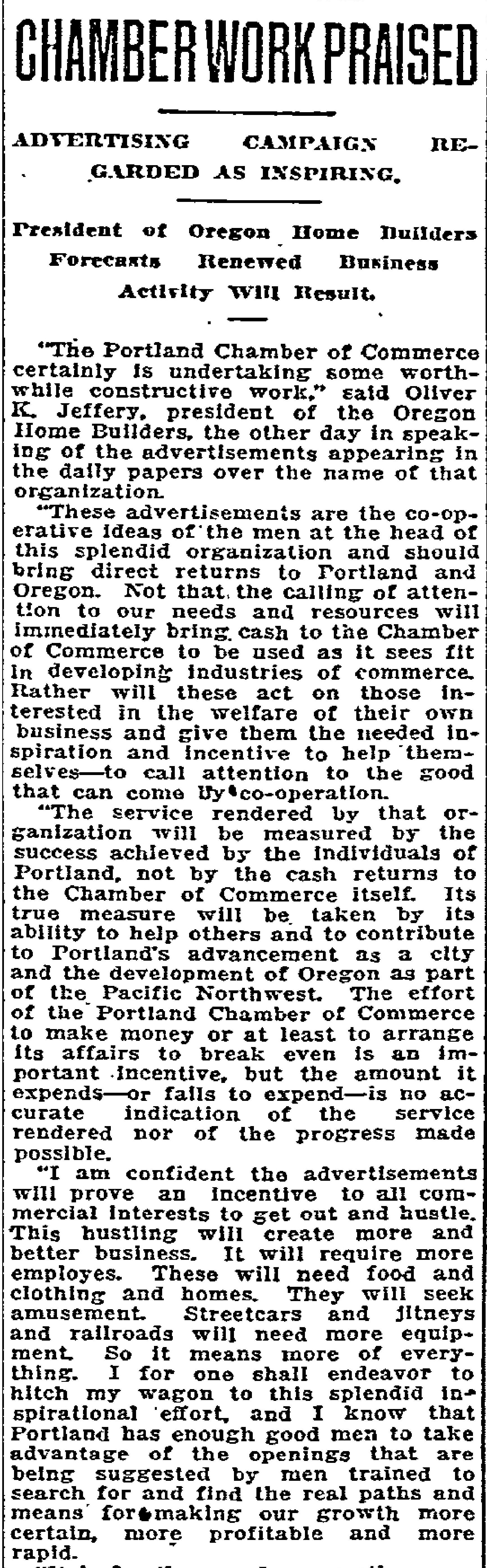 From The Oregonian, January 21, 1921