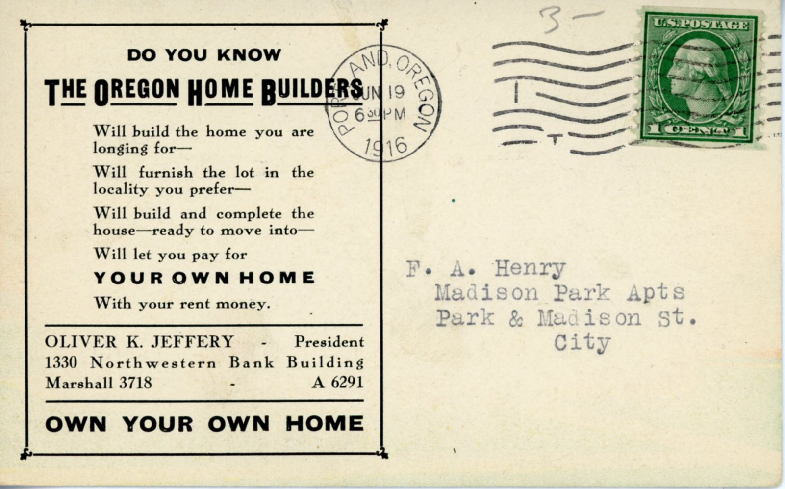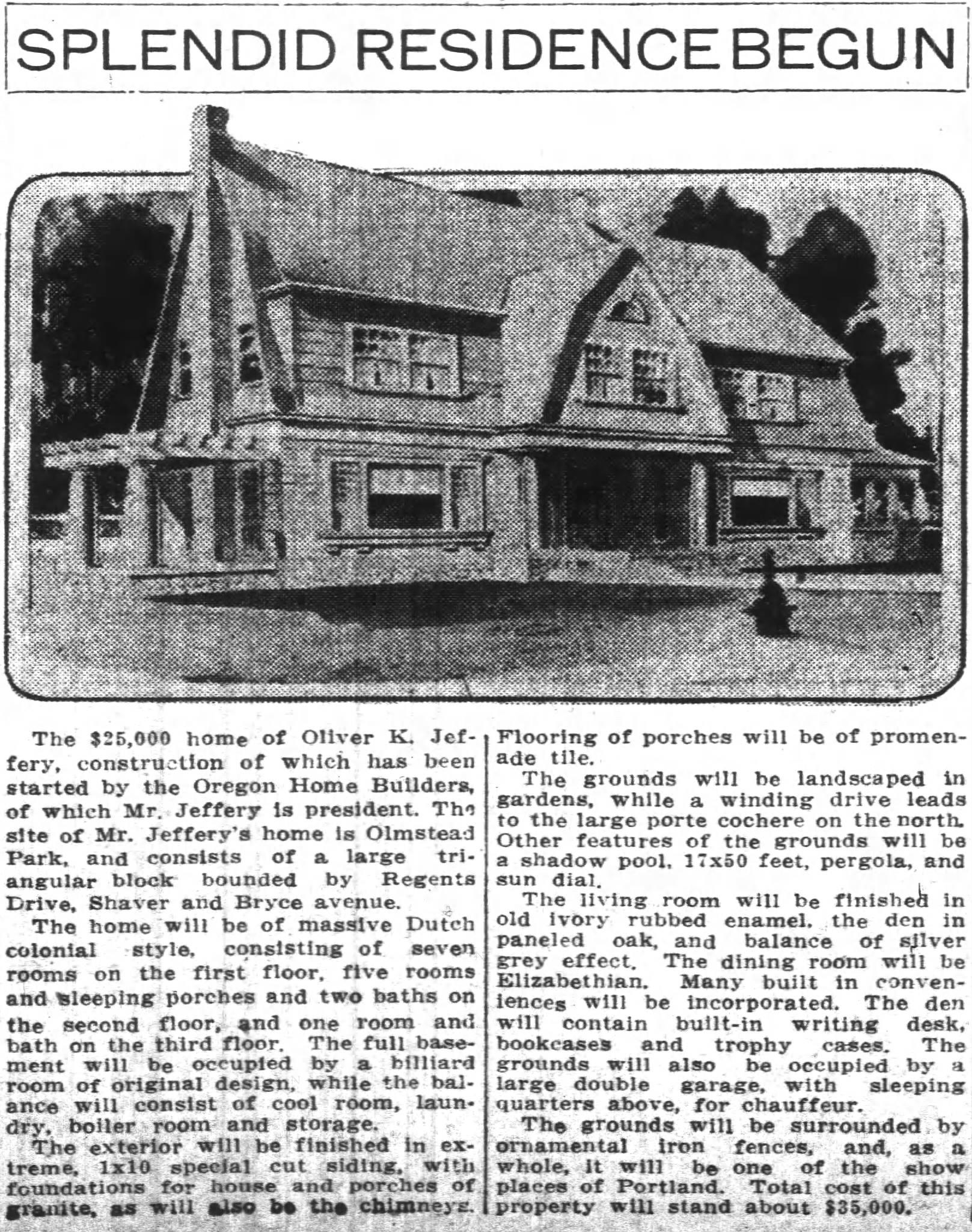 First a little context about Oregon Home Builders and its president Oliver K. Jeffery…