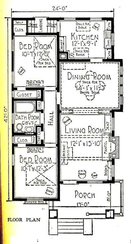 The origin of the house has an interesting story: when AH started exploring the home’s history this week, we determined that it’s a Sears Roebuck house, built in 1921 by builder Albert W. Horn. The floor plan is pure Sears Argyle, one of the company’s most successful kit homes, sold from 1917-1925. Here, take a look: