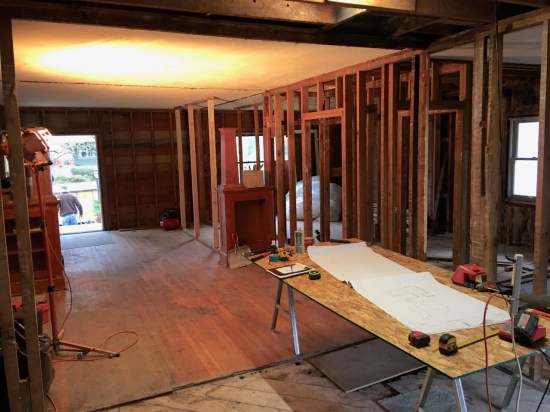 “Sometimes, going down to the studs in an old house like this is just easier because you know exactly what you’re working with,” said Craig McNinch of McNinch Construction who is running the project utilizing drawings by Lynn Harritt. He also restored Ford and Garlock’s current bungalow on NE 29th. “This place has great bones,” says McNinch, gesturing to the full dimension 2 x 4 framing lumber, the solid oak floors and the foundation.