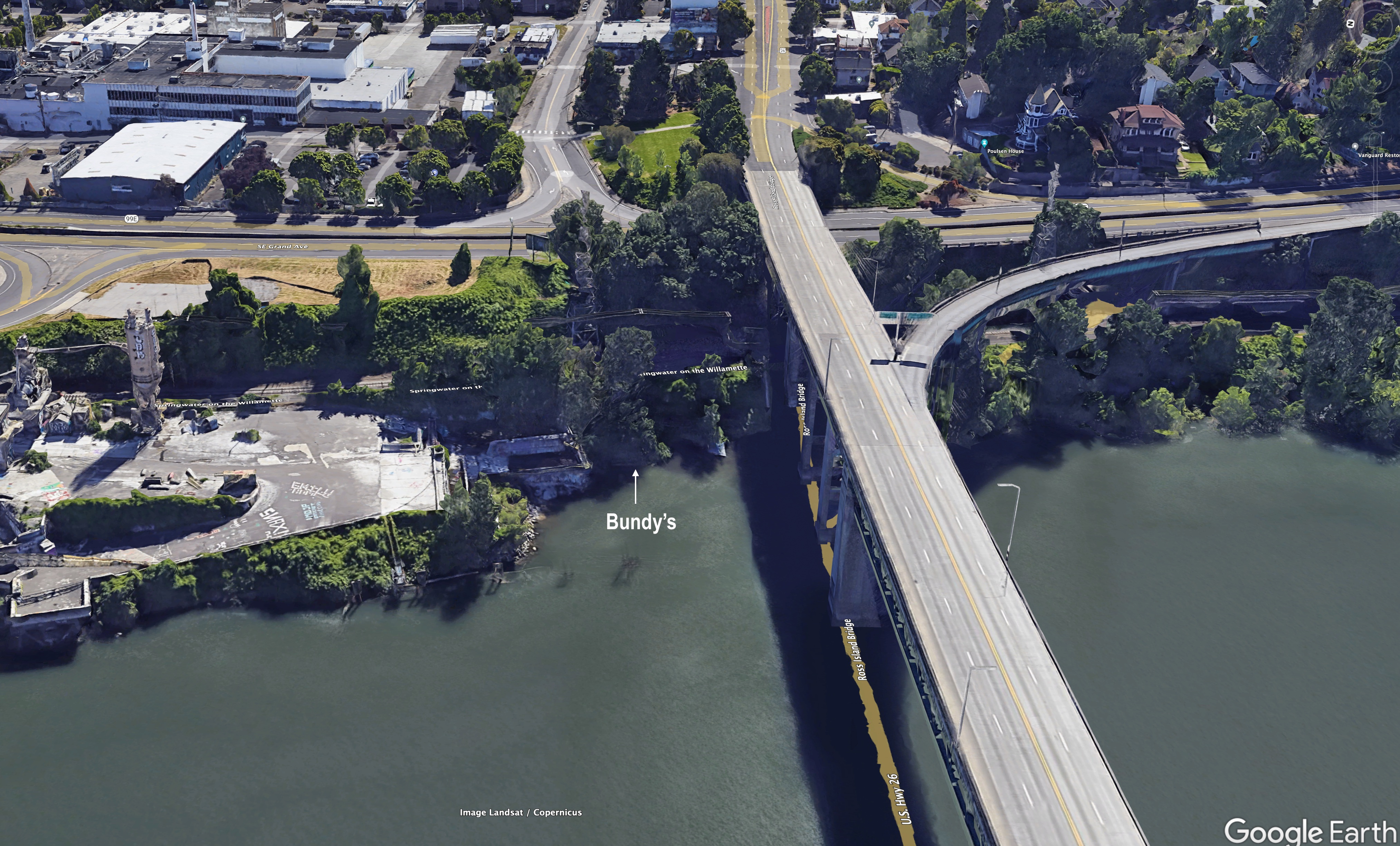 From 1900 until the early 1920s, Bundy’s was the epicenter of swimming in this stretch of the Willamette. But by 1925, Portlanders abandoned the river because it had become the main receptacle for the city’s raw sewage, and due to heavy industrialization on this side of the river.