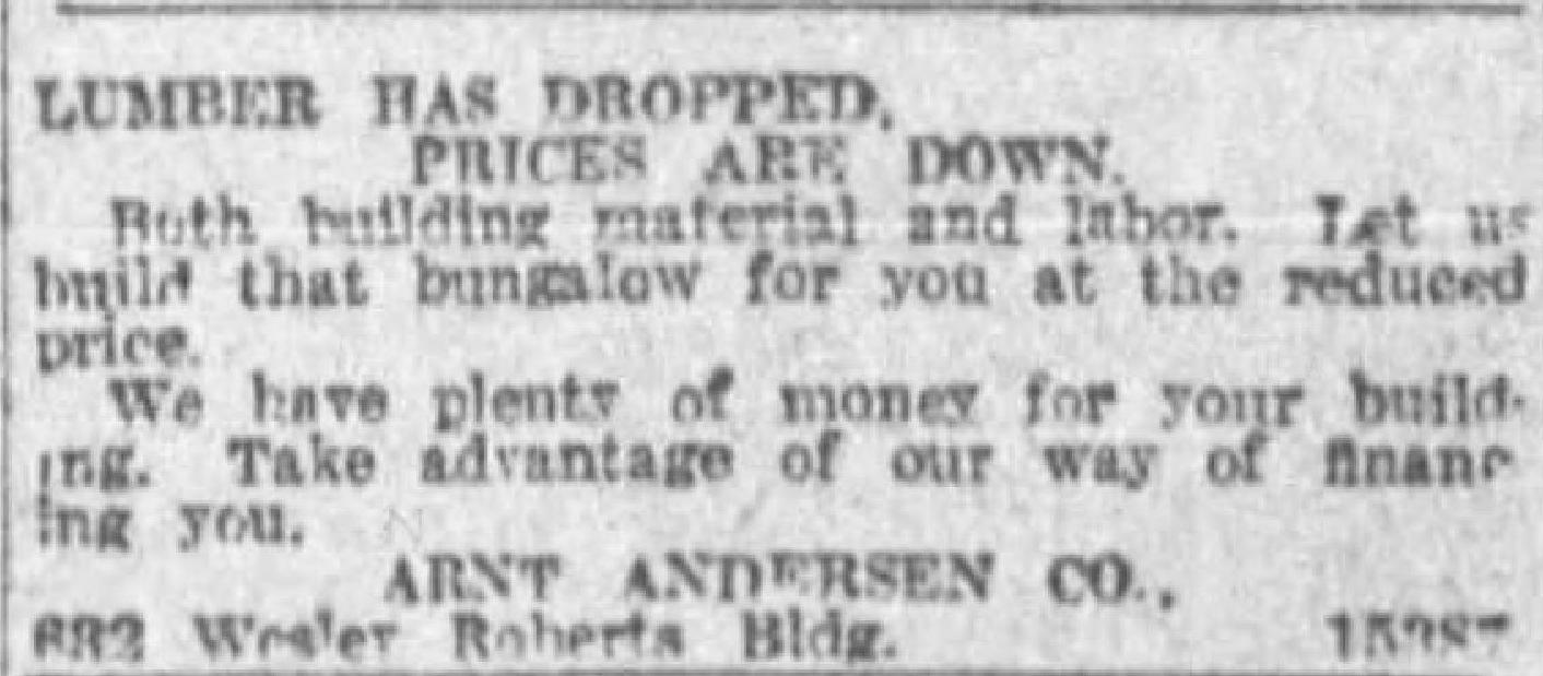 Arnt Anderson was a talented Northeast Portland homebuilder turned convicted con artist who lived and worked in Portland for five years between 1911-1915.