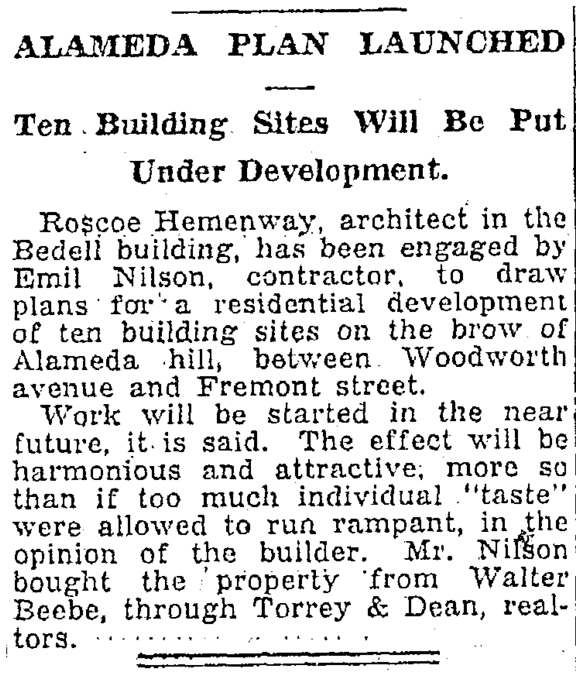 Emil Nilson was born in Kalix, Norbotten, Sweden in January 1888. He and his wife Ellen were both immigrants arriving in the US in 1907-08. They were married in Portland in 1915 and had one daughter, born here in 1919. During the 19-teens, Nilson worked as a carpenter for other builders. By the early 1920s, he was working on his own as builder/developer, focusing on the Alameda neighborhood in Northeast Portland. He lived in Rose City Park.