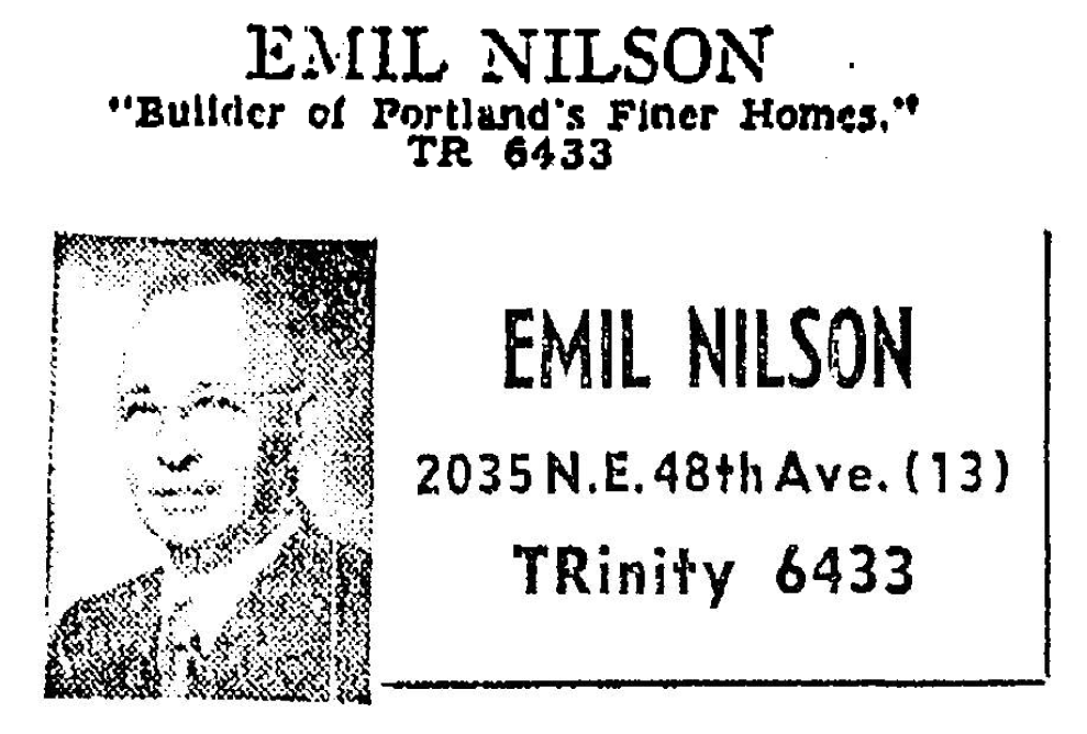 In the 1930s and 1940s, Nilson built dozens of homes in southeast and southwest Portland and branded himself as “Master Builder” and “Builder of Portland’s finer homes.” Nilson built multiple homes in Eastmoreland during the late 1930s, including 3231 SE Bybee; 6243 SE Reed College Place; and 6230 SE 34th Avenue.
