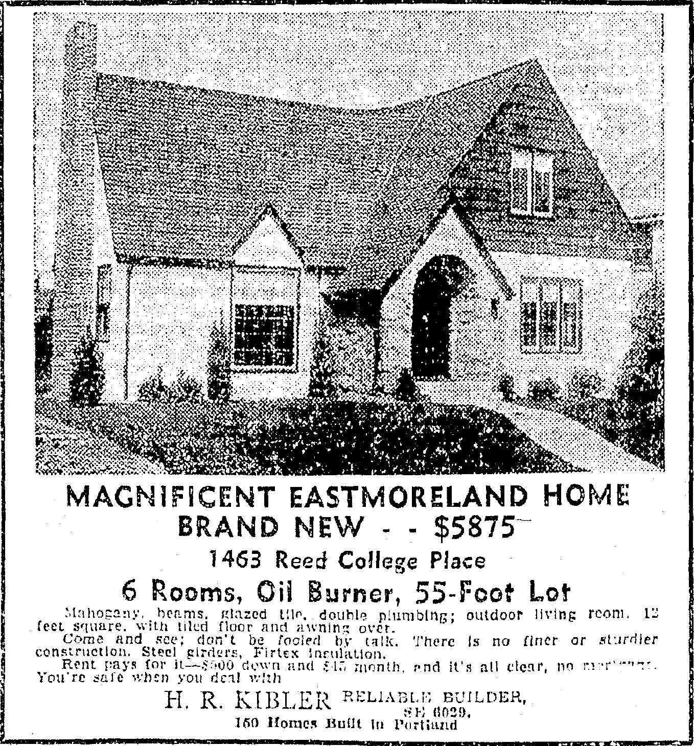 The 1920s were boom years of home construction in Portland and Kibler was busy, almost entirely on the eastside. In his newspaper advertisements in the late 1920s, he bragged that he had built more than 100 homes in Portland. In 1928, he moved to Eastmoreland.
