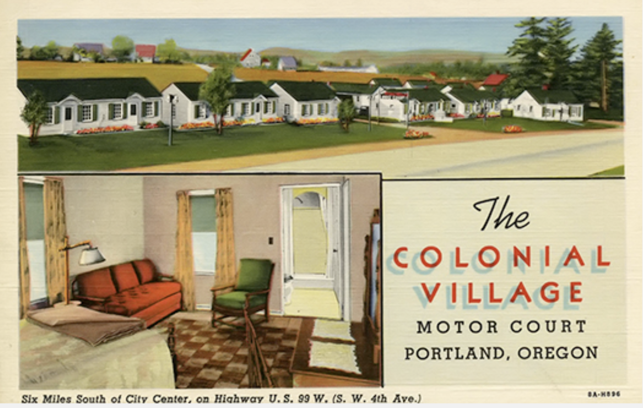 Among other projects Kibler became known for was the Colonial Village Motor Court, a collection of 20 “tourist cabins” he built and owned in 1933, located in the 4700 block of SW Barbur Boulevard, which lasted until their demolition in 1974. Portland had several tourist cabin developments, including one that existed near today’s Fernhill Park, but was demolished in 2018.